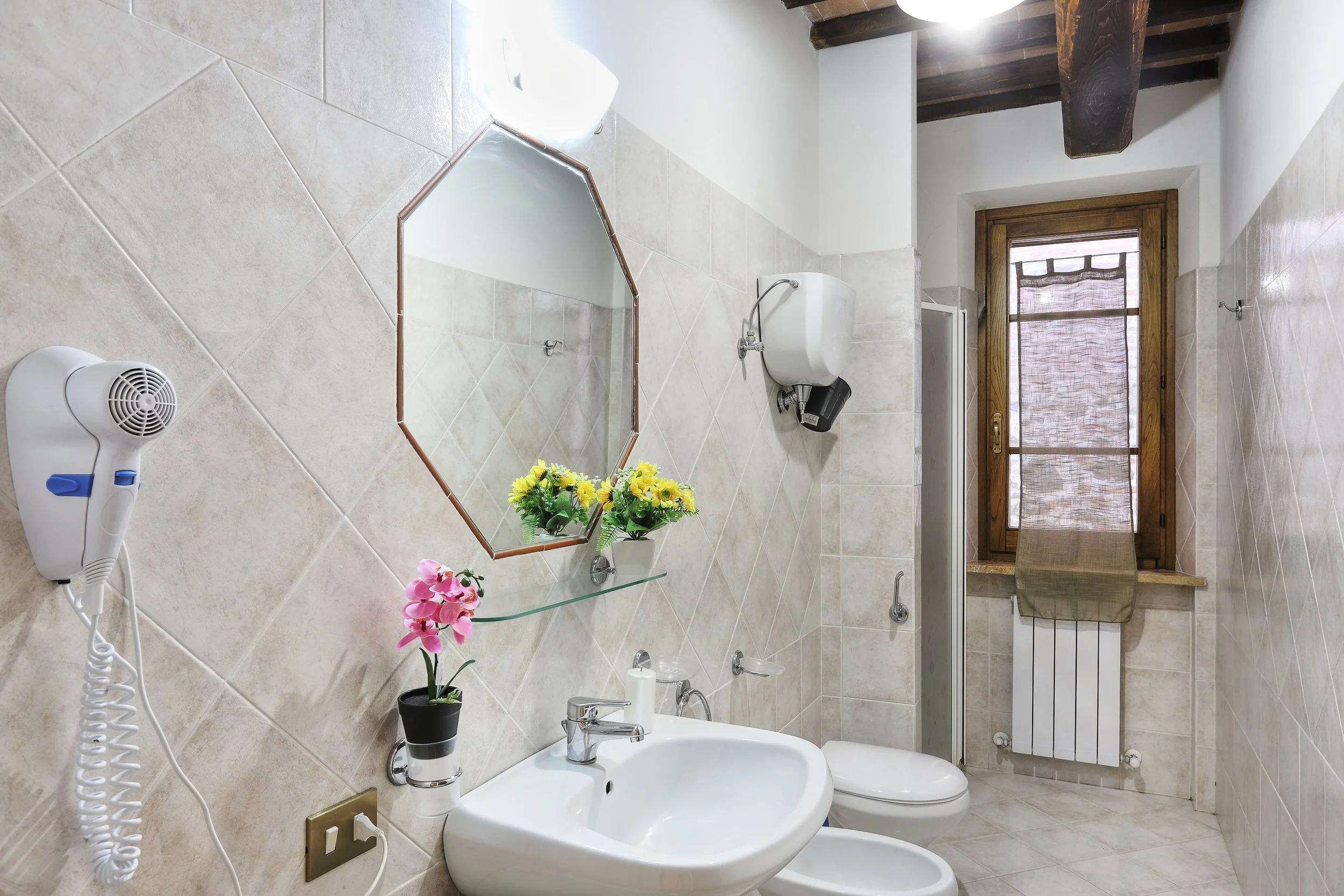 Apartment 1 is located on the first floor of the farmhouse. It has a large living room with dining table, fireplace and fully equipped kitchenette and air conditioning. There are three comfortable bedrooms, two with double bed and one with two single beds and two bathrooms. Outside, a pleasant furnished patio is available to our guests.